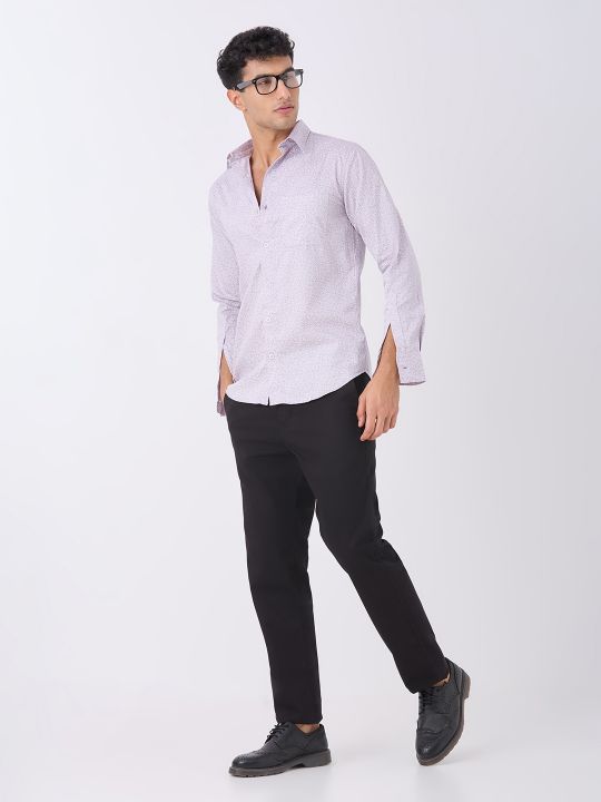 Lavender Micro Print Cotton Shirt with Long Sleeves