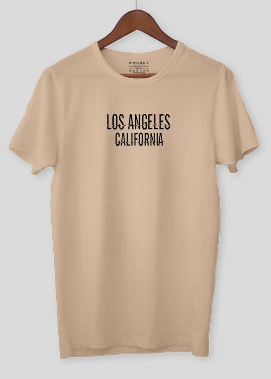 Los Angles California Beige Half Sleeve T-Shirt For Men