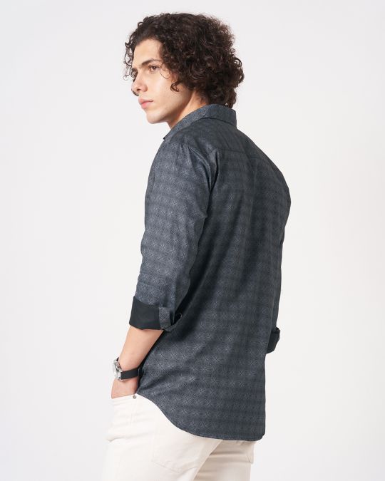 Men Black Minimal Matrix Print Full Sleeve Shirt