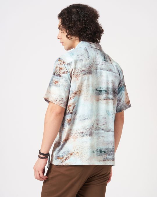 Men Blue Abstract Stone Texture Printed Casual Shirt