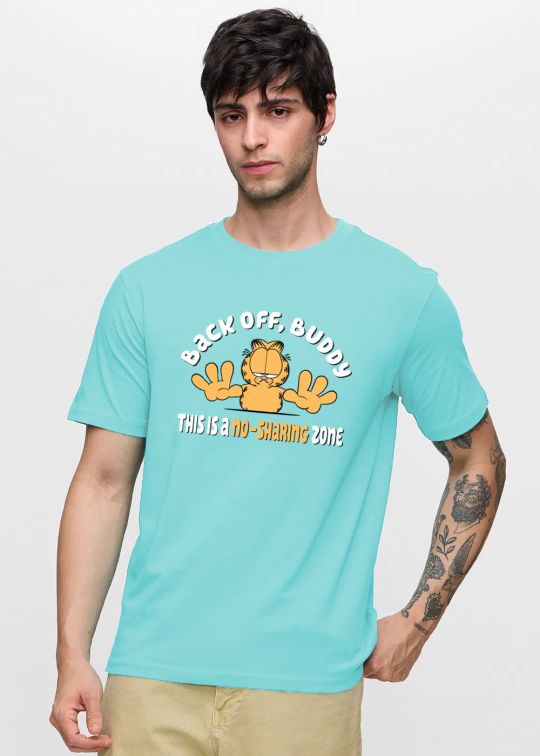 No Sharing Zone Garfield Aqua Half Sleeve T-Shirt For Men