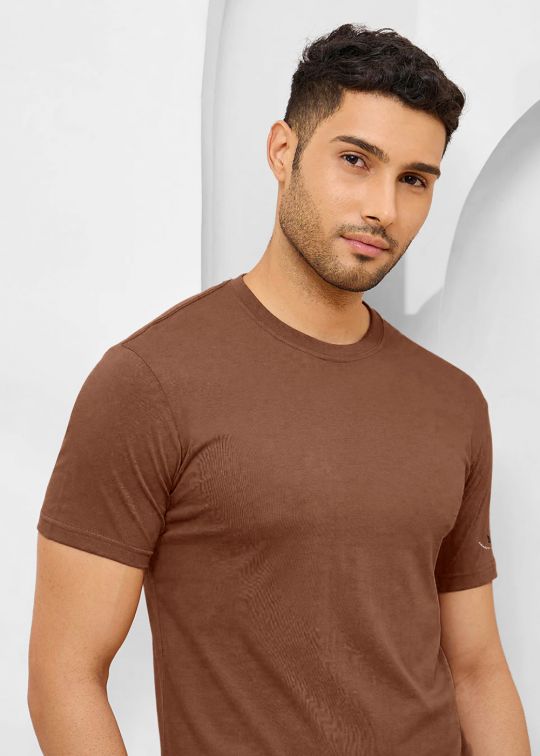 Solid Mocha Half Sleeve RN T-Shirt